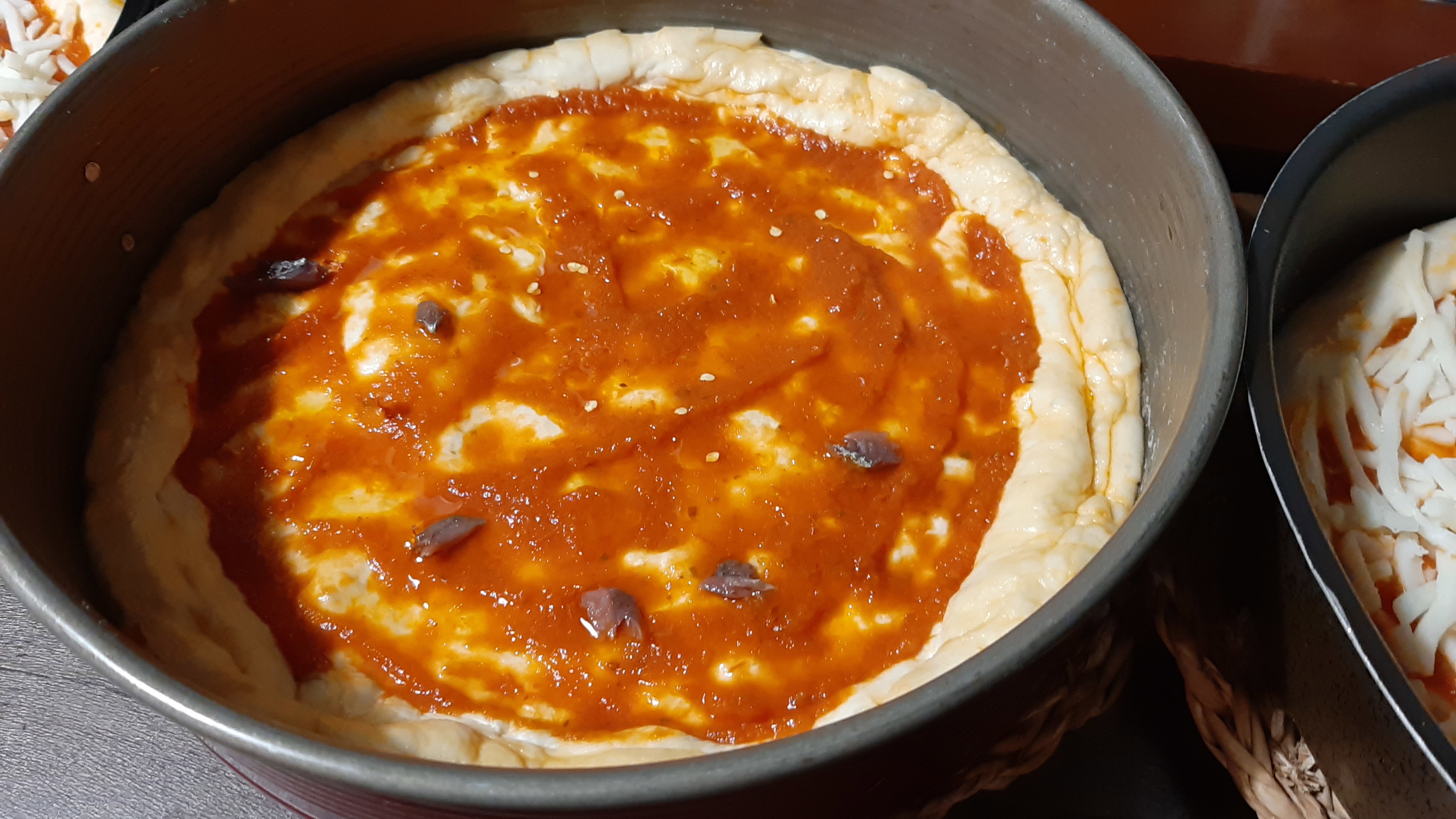per circa 2h prima di procedere alla stesura e alla realizzazione delle pizze. Trascorso il tempo indicato, l’impasto si presenta rilassato e lievitato, morbido, seppure compatto. Il vostro impasto è pronto per realizzare la vostra pizza preferita! Quindi preparate una ciotola con un'emulsione di acqua ed olio ed esercitate una leggera pressione al centro del panetto con le dita, per spingere l'aria verso i bordi.